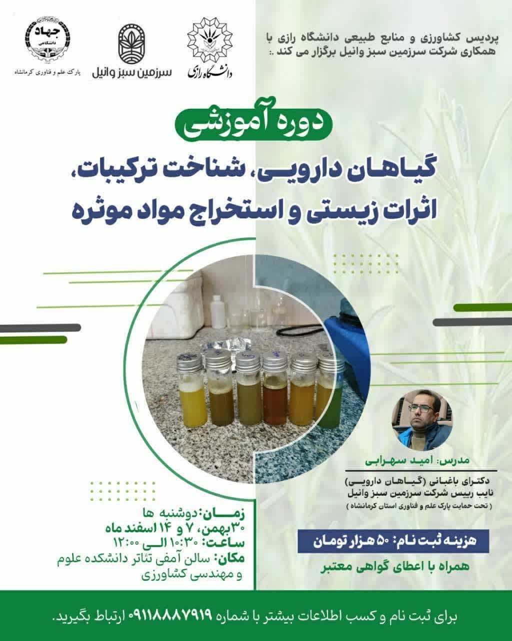 دوره آموزشی گیاهان دارویی، شناخت ترکیبات، اثرات زیستی و استخراج مواد مؤثره - پردیس کشاورزی و منابع طبیعی
