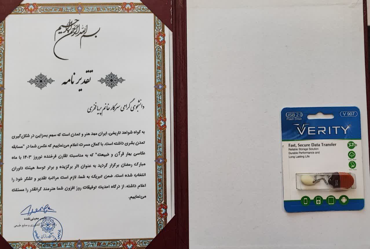 تقدیر از برگزیده مسابقه عکاسی بهار قرآن و طبیعت + عکس برگزیده